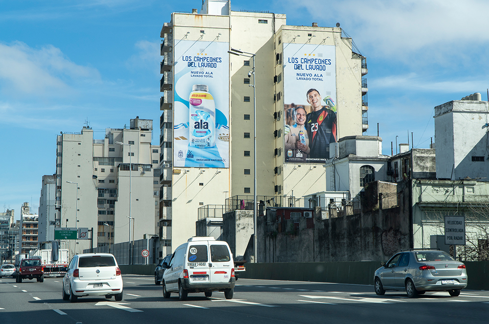 Doble Mediawall iluminada mediante tecnología LED, limitando el impacto sobre nuestra huella de carbono, y optimizando el consumo energético; sita en AU 25 de Mayo y Luis Sáenz Peña– Capital Federal. Enfrenta el tránsito que circula por AU 25 de Mayo desde AU Bs. As. – La Plata / 9 de Julio Sur. hacia Av. Gral. Paz – Ezeiza – Acceso Oeste.