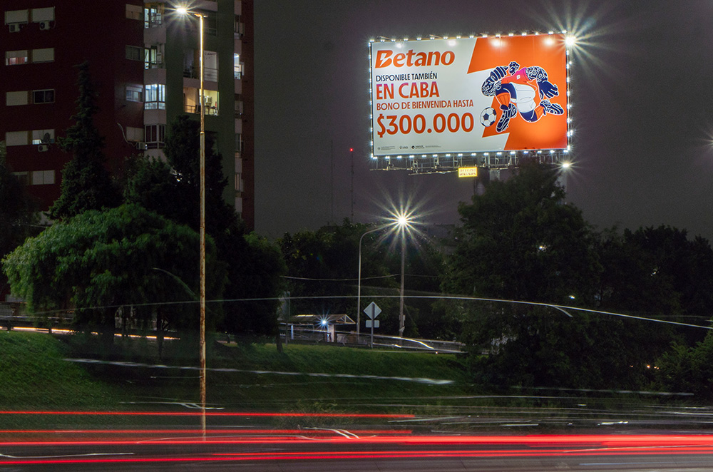 Columna Espectacular con con Sistema Perimetral de luzLED Blanco, iluminada mediante tecnología LED, limitando el impacto sobre nuestra huella de carbono, y optimizando el consumo energético; sito en AU Ricchieri y Margarita Thompson – Pcia. de Buenos Aires – 400 mts del peaje. Cara que enfrenta tránsito que circula por Au. Ricchieri desde Ezeiza hacia Capital Federal. Y cara que enfrenta tránsito que circula por Au. Ricchieri desde Capital Federal hacia Ezeiza.